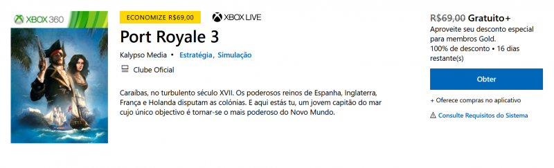 Atenção: Oferta exclusiva para assinantes da Xbox Live Gold.