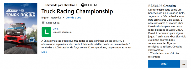 Atenção: Oferta exclusiva para assinantes da Xbox Live Gold.
