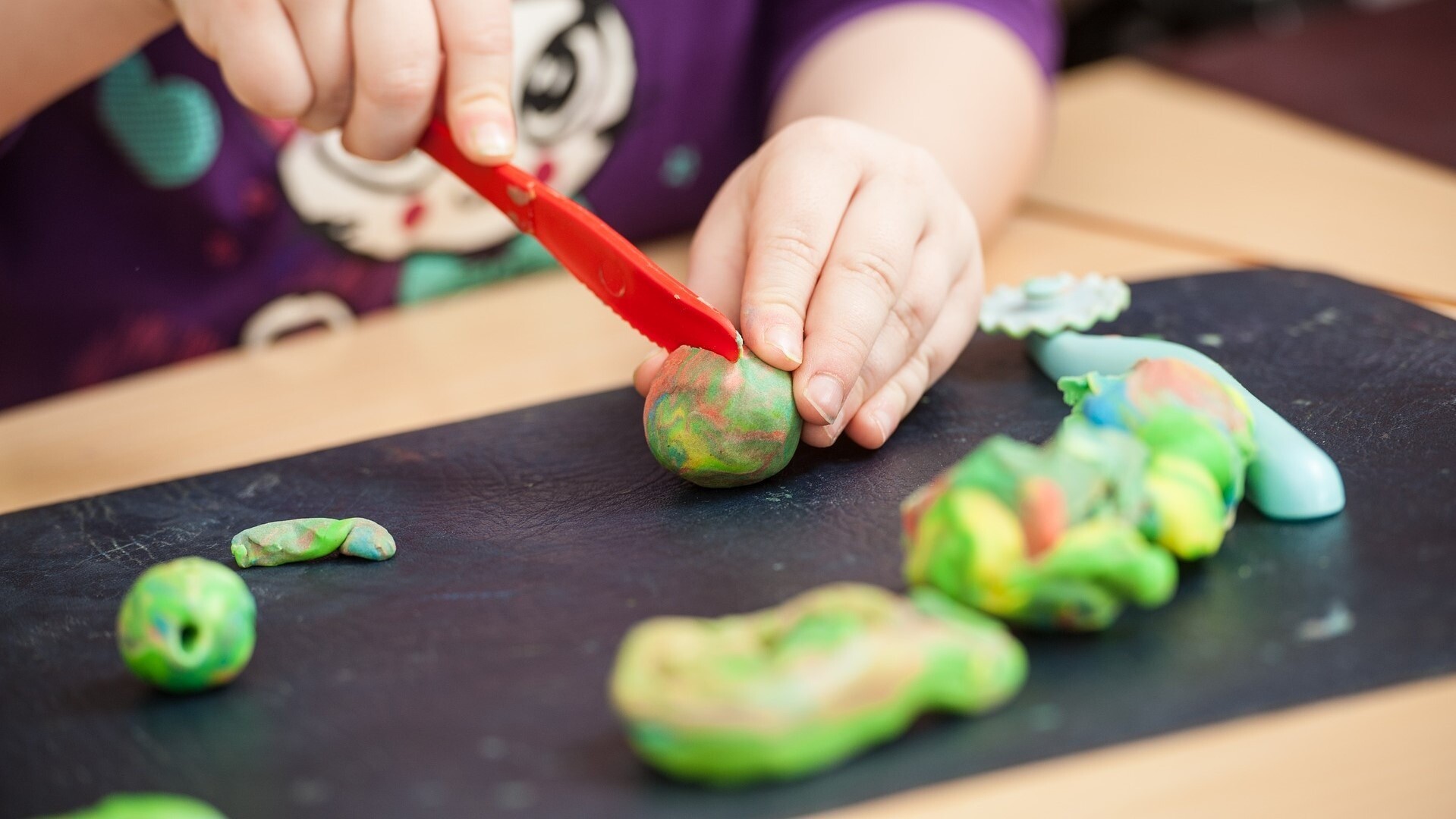 Ao brincar com massinha de modelar, uma criança vai ter a oportunidade de materializar e expor todos os seus pensamentos, além de descobrir as diferenças entre as cores. Também será possível descobrir e lidar com as texturas das massinhas enquanto sente como é apertar, mexer e juntar os materiais. Esses processos são importantes para o desenvolvimento do pensamento e da coordenação motora.
