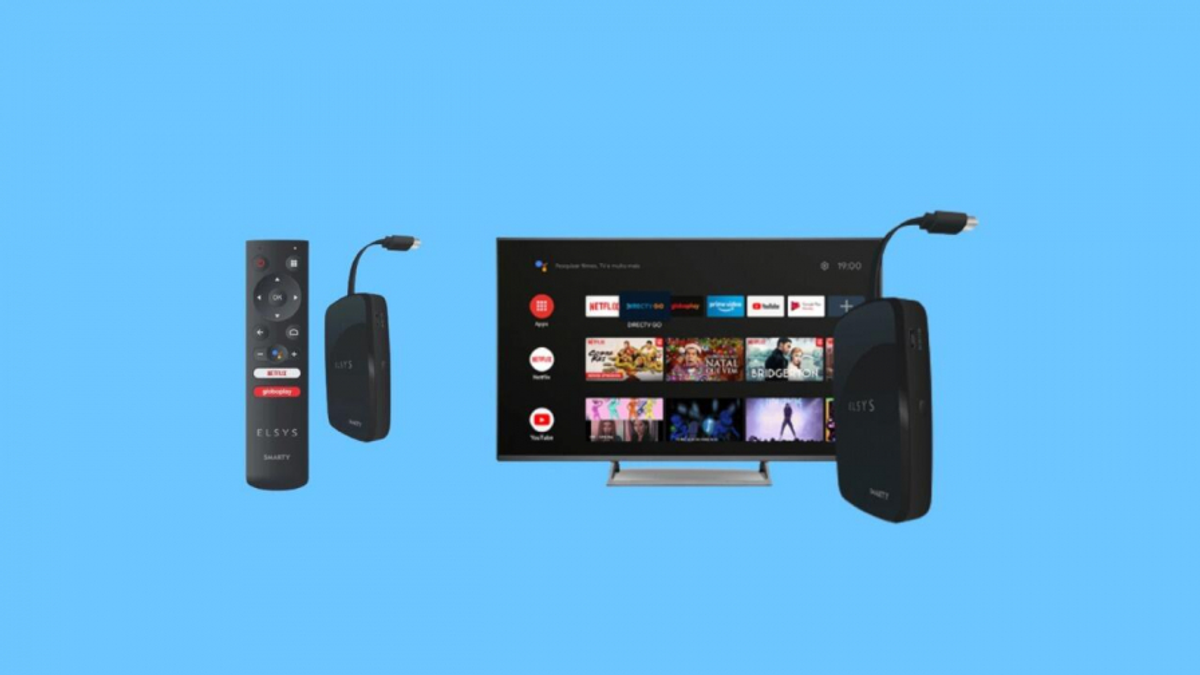 Embora seja mais fácil associar esse tipo de aparelho ao Chromecast do Google, a verdade é que o dongle da Elsys está mais próximo do Fire Stick TV da Amazon e do Mi TV Stick da Xiaomi. Isso porque o SMARTY Elsys conta com controle remoto e uma plataforma smart ao invés de apenas espelhar funções do smartphone. O modelo conta com Android TV versão 8.0 e suporta comando de voz pelo controle remoto para o Google Assistente.