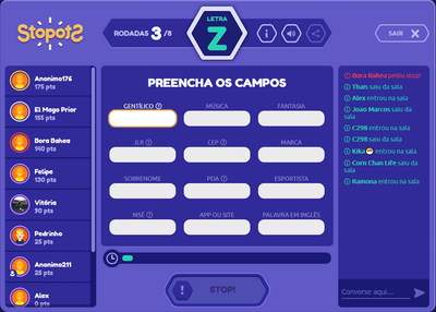 O clássico STOP também está disponível em uma versão online e gratuita. O jogo segue exatamente as mesmas regras do modelo físico, com a diferença de que você pode jogar com pessoas desconhecidas ou montar uma sala apenas para você e seus amigos.