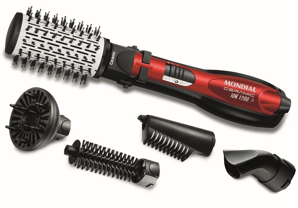 Esta escova rotativa da Mondial tem 1200W de potência, além de dois níveis de temperatura e jato de ar frio, que ajuda a dar brilho e um aspecto saudável ao cabelo. Ela vem com quatro acessórios para diferentes tipos de penteados e finalizações no cabelo, para você conseguir secá-lo, alisá-lo e modelá-lo da melhor forma.