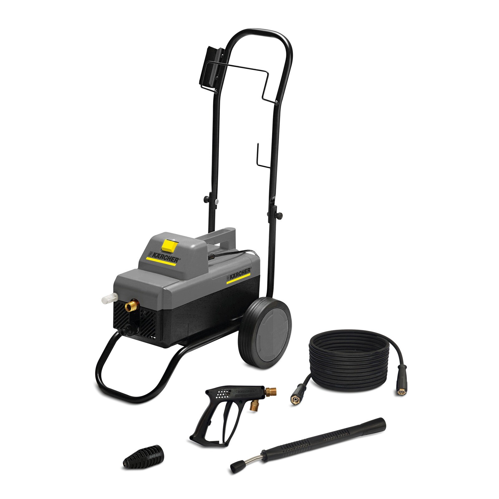 Para quem precisa dar conta de limpezas mais pesadas e em espaços grandes, a Karcher HD585 traz ótimas especificações. Seu cabo elétrico tem extensão máxima de 7,5 metros, sua vazão é de de 500I/h, a maior em nossa lista, e possui 2200 psi de pressão e 2.200 de potência.