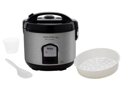 Outro modelo da Mondial, marca bastante renomada, mas voltado para quem quer um pouco mais de capacidade de preparo: 6 xícaras. Sua potência também é um pouco maior do que o modelo anterior da mesma marca, chegando a 400 W, ideal para cozinhar e aquecer alimentos mais simples, como o arroz branco ou integral.