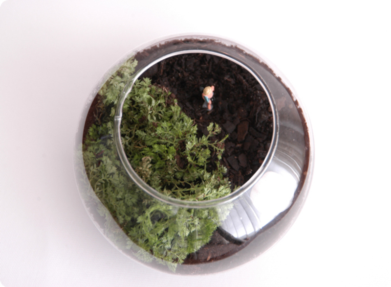 Para apartamentos, recomendamos os terrários fechados, geralmente feitos em um pote de vidro redondo e grande. Nele, se reproduzem as condições naturais de um ambiente, como se você estivesse vendo um jardim de cima. Como é fechado, não precisa de muita manutenção, apenas se o vidro ficar sujo ou se a planta crescer demais.