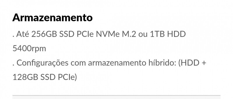 Bom dia pessoal, queria saber se consigo usar o slot de SSD como descrito na imagem abaixo, junto com o HD 1TB que vem no Lenovo L340? Ou preciso usar o armazenamento híbrido, comprar um SSD PCIe 128GB para usar junto com o HD?