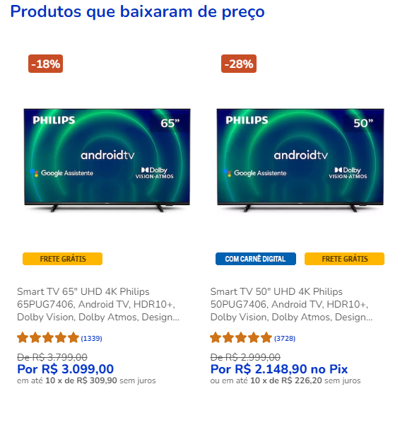 Tem diferença na imagem da tv philips 50 e da 65 polegadas?