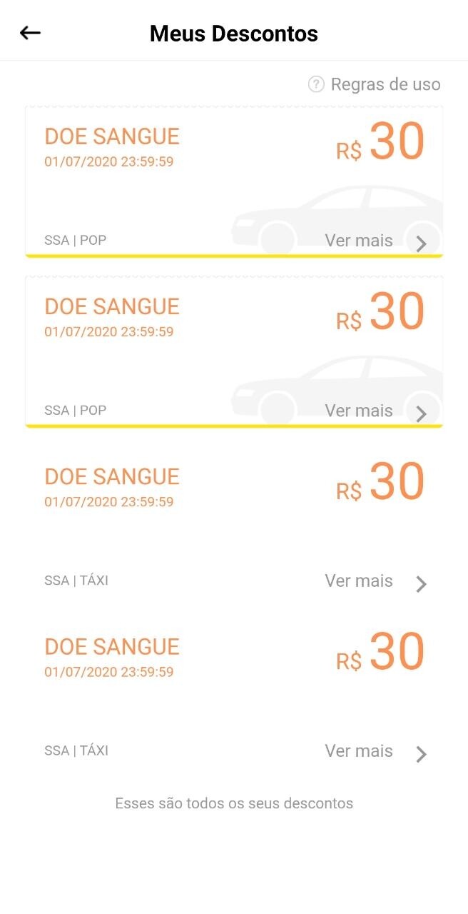 Insira o código DOESANGUEPB na aba “Cupom de desconto” do app. Você recebe duas corridas no valor de R$ 30 para ir e voltar.