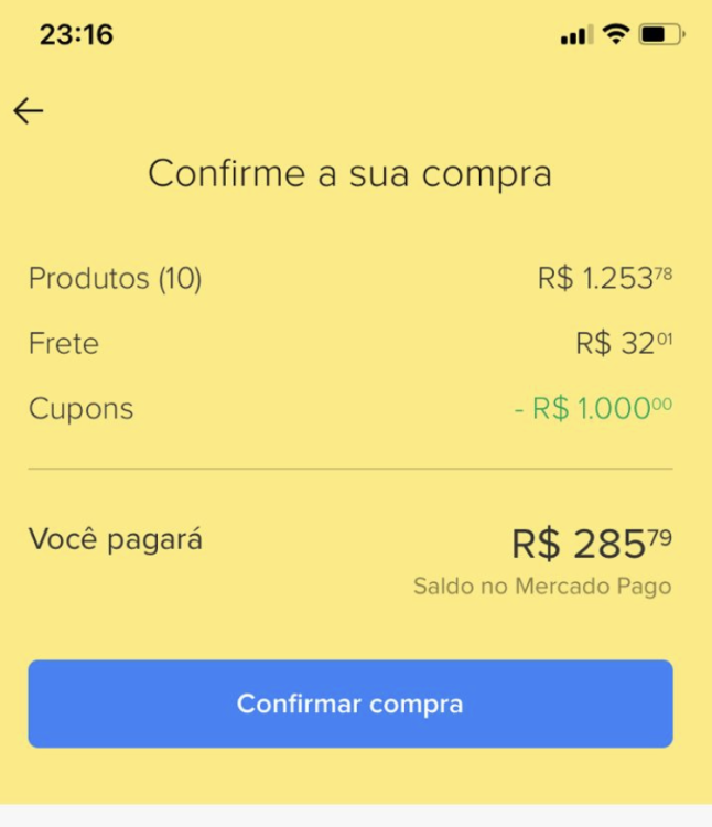 Exemplo: Se você quer comprar um produto de R$1200 com o cupom de R$1000, deposite R$200 na sua conta do Mercado Pago para que você tenha saldo na hora para utilizar o cupom.