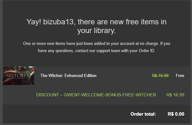 5) Adicione Witcher Enhanced Edition ao seu carrinho, e o preço mudará para $ 0. Conclua a compra, e o jogo ficará disponível para sempre em sua conta.